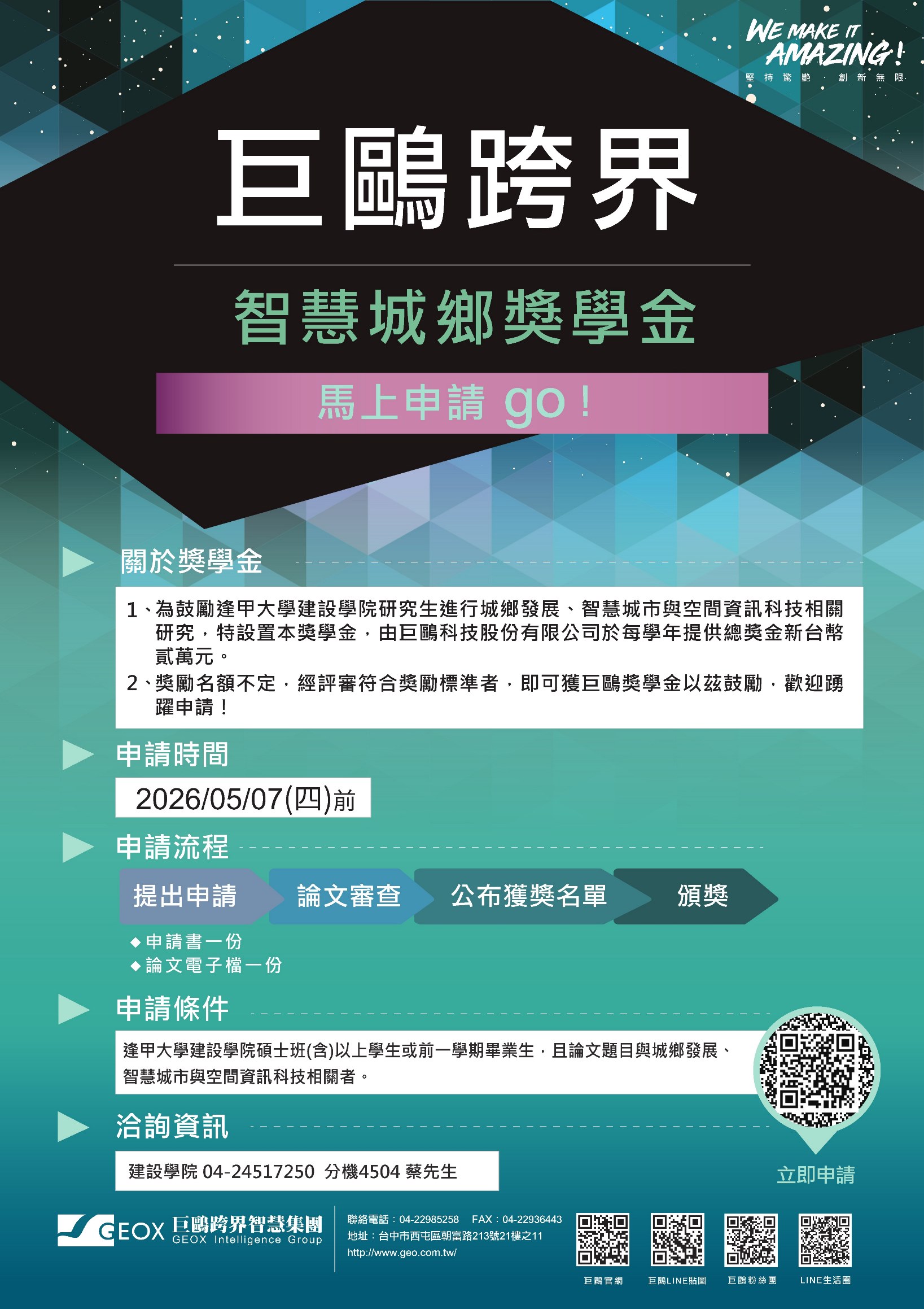 6、洽詢資訊:建設學院04-24517250轉4504 蔡先生